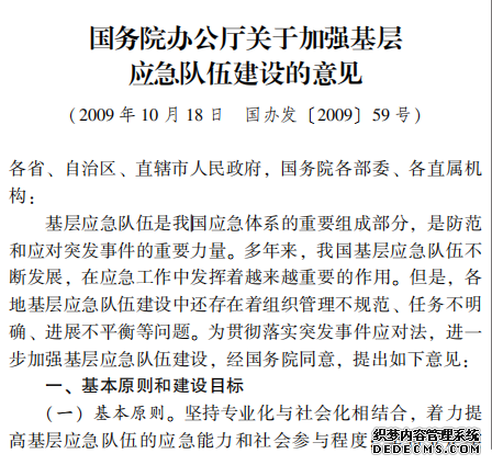 國務院辦公廳關于加強基層 應急隊伍建設的意見