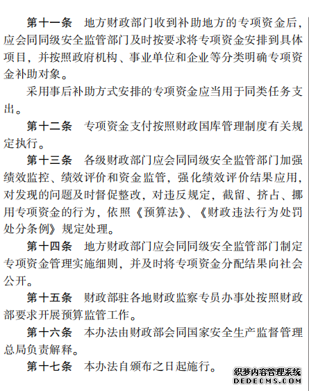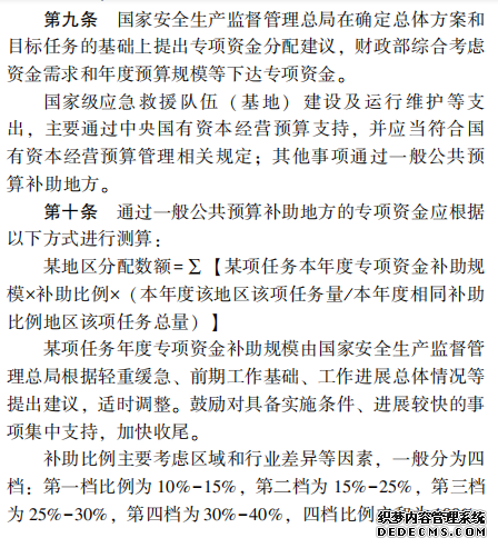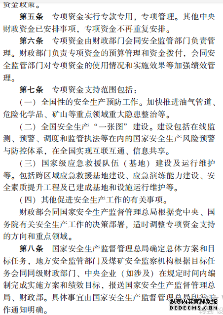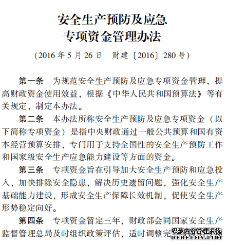 安全生產預防及應急 專項資金管理辦法