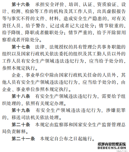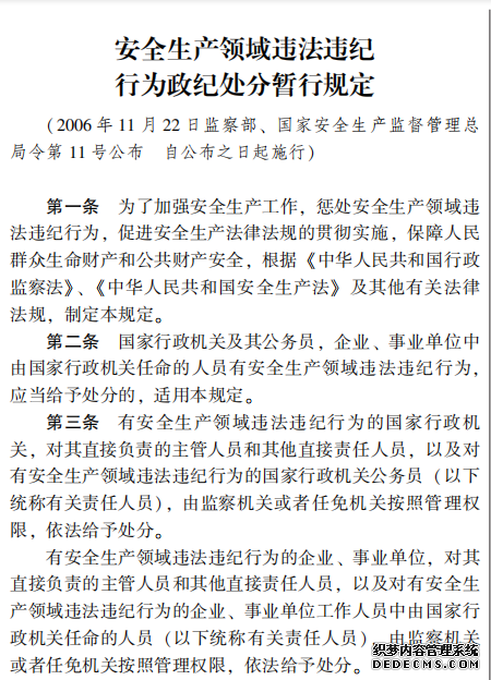 安全生產領域違法違紀 行為政紀處分暫行規定