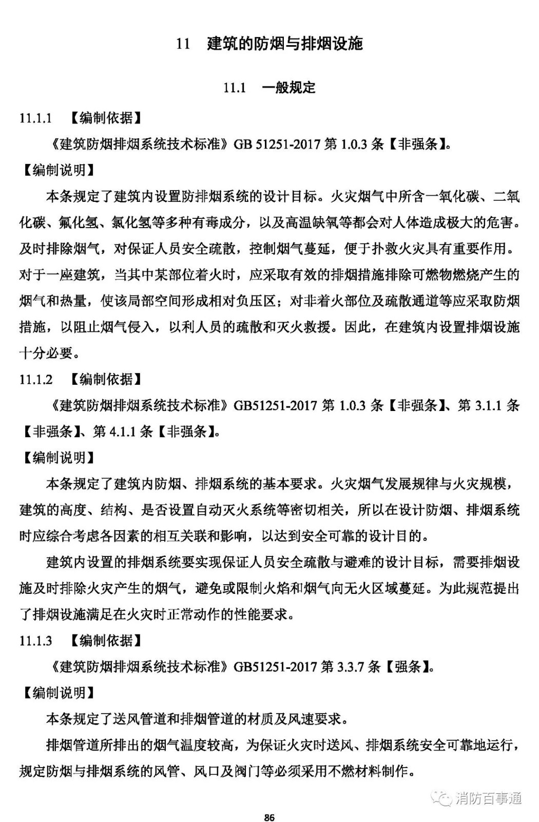 11.1.1 建筑內的防煙和排煙系統應能有效控制建筑內火災煙氣的流動與蔓延,保障建筑內的人員安全疏散,并應有利于滅火救援。