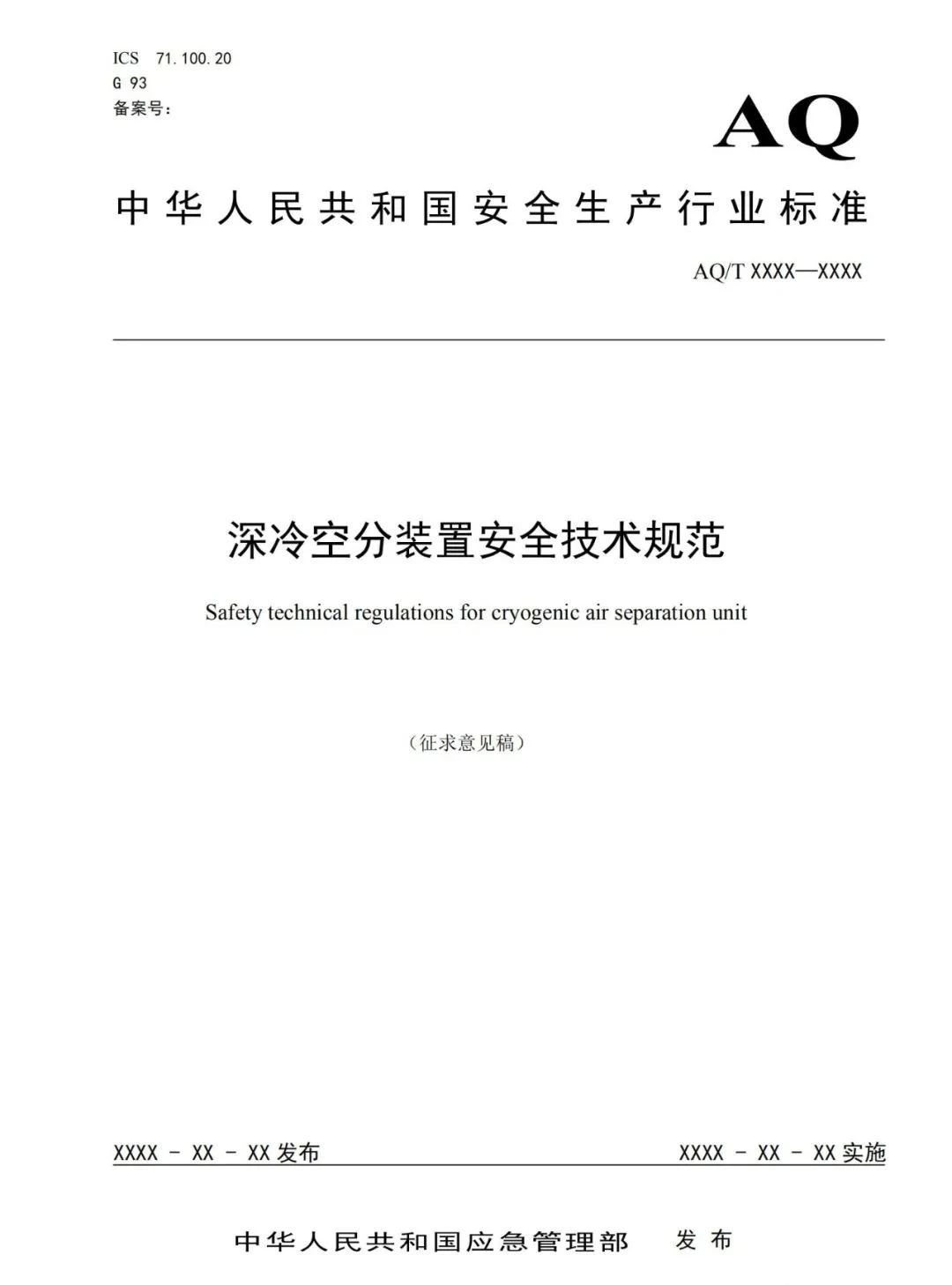 12月15日,國(guó)家應(yīng)急管理部發(fā)布了關(guān)于《深冷空分裝置安全技術(shù)規(guī)范》(征求意見稿)等兩項(xiàng)標(biāo)準(zhǔn)征求意見。此次公開征求意見時(shí)間為2020年12月10日至2021年2月10日。本標(biāo)準(zhǔn)規(guī)定了深冷空分裝置的總體布局、吸入空氣質(zhì)量控制、壓縮機(jī)、膨脹機(jī)、低溫泵、空分冷箱和精餾系統(tǒng)、產(chǎn)品儲(chǔ)運(yùn)、稀有氣體裝置、控制系統(tǒng)、安全操作運(yùn)行、人員管理與事故應(yīng)急處置等內(nèi)容的要求。本標(biāo)準(zhǔn)適用于以冶金、有色、化工、石化、煤化工、電子等領(lǐng)域采用深冷空分裝置制取氧、氮、氬(包含:氦、氖、氪、氙稀有氣體)等空氣產(chǎn)品的企業(yè)。附件:深冷空分裝置安全技術(shù)規(guī)范(征求意見稿)