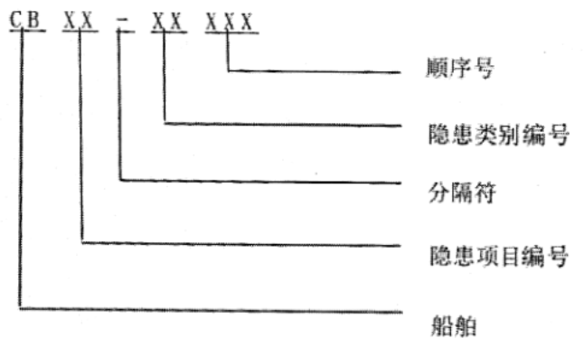 b)隱患類別編號—各類隱患拼音的縮寫,見表1;