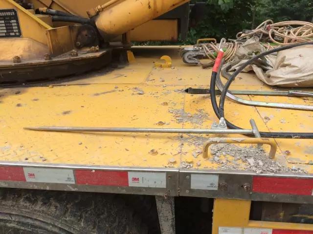 臨時接地保護裝置的具體操作程序:吊車選好位置,放下支腿還未起吊前。在吊車場地周圍,先選擇優質、實地的土壤面,用大鐵錘將接地樁打入土地下大于80厘米。然后將接地線兩端線夾分別固定在接地樁的車體上,車體接觸部位必須是沒有油漆的金屬面。做好以上措施后,司機才可以上車操作。吊車操作完畢,要吊臂就位放好后,方可以拆除接地線。