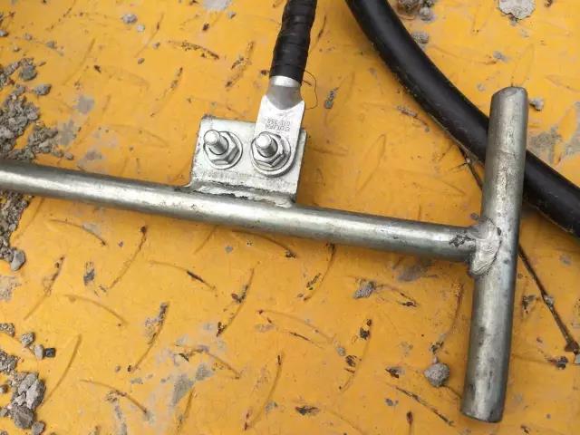 臨時接地保護裝置具體包含: (1)接地銅絲線,由一根若干米長、直徑不小于25mm, 外層透明塑料護套層的多股、優質專用軟銅線組成;(2)連接線夾,固定在接地線的兩端,用于連接車身和接地樁; (3)臨時接地極,既接地樁(棒),長度必須大于120cm、截面大于190mm2的金屬圓錐體。