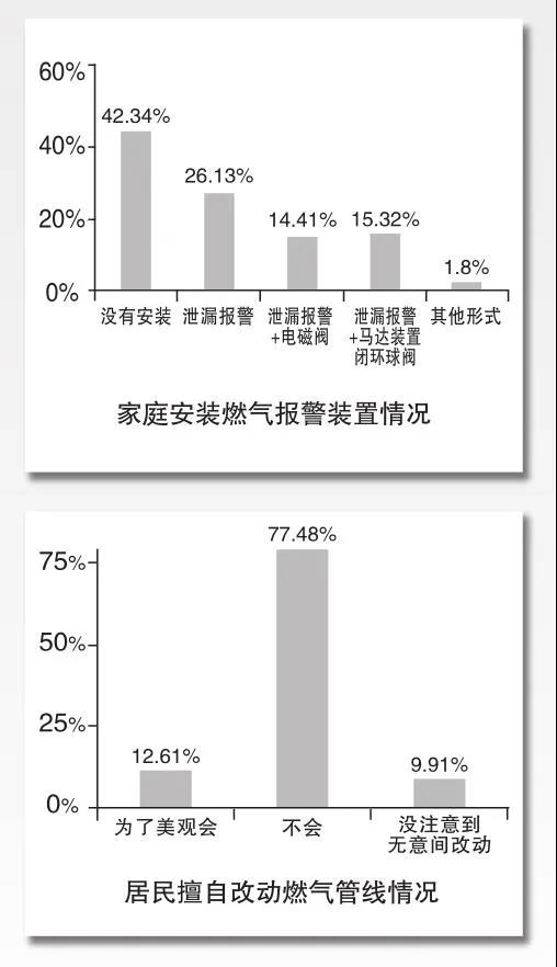 問(wèn)卷調(diào)查的結(jié)果也顯示,在111名被調(diào)查者中,47人的家中沒(méi)有安裝燃?xì)鈭?bào)警裝置,占42.34%。