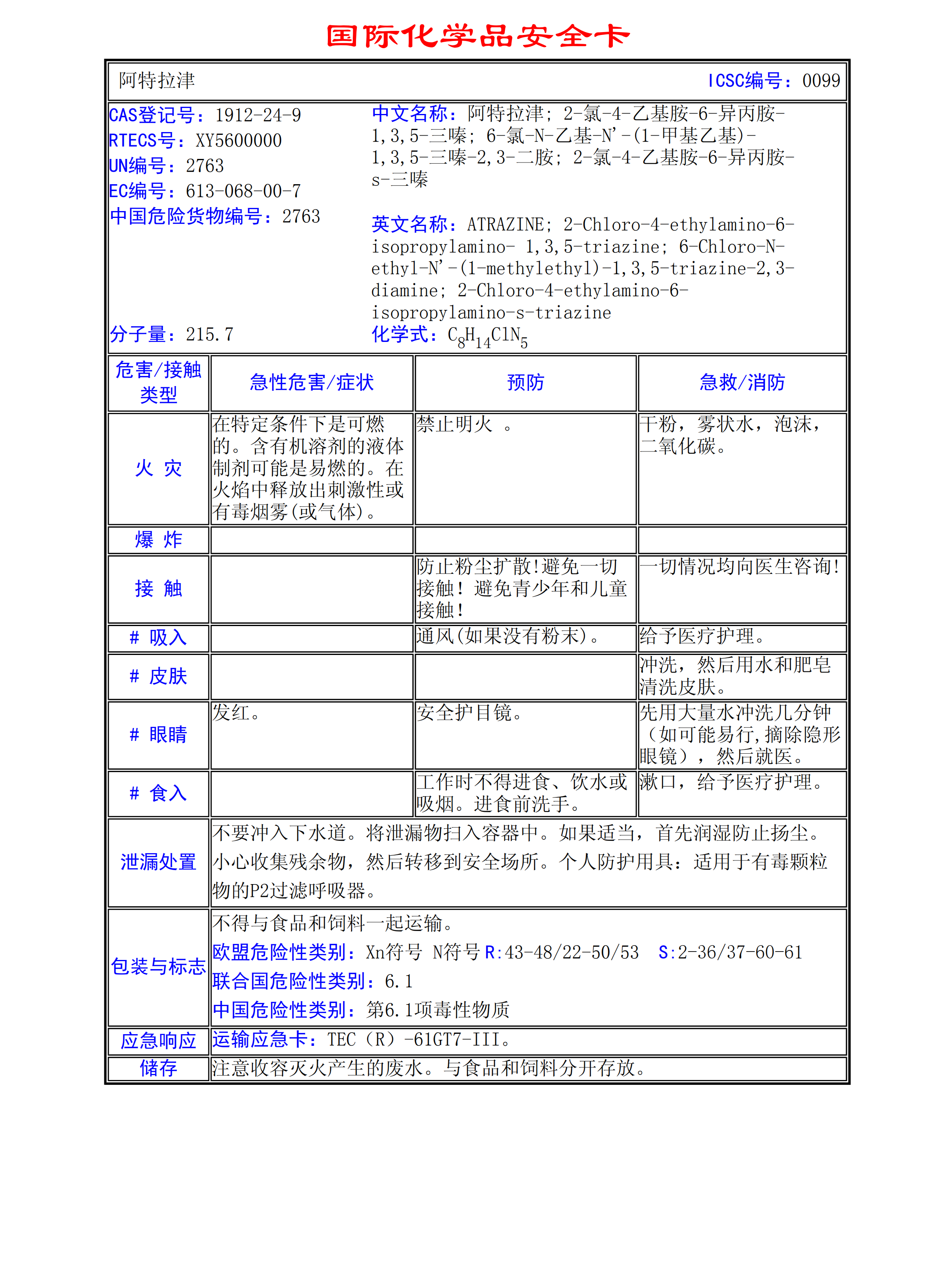 阿特拉津MSDS