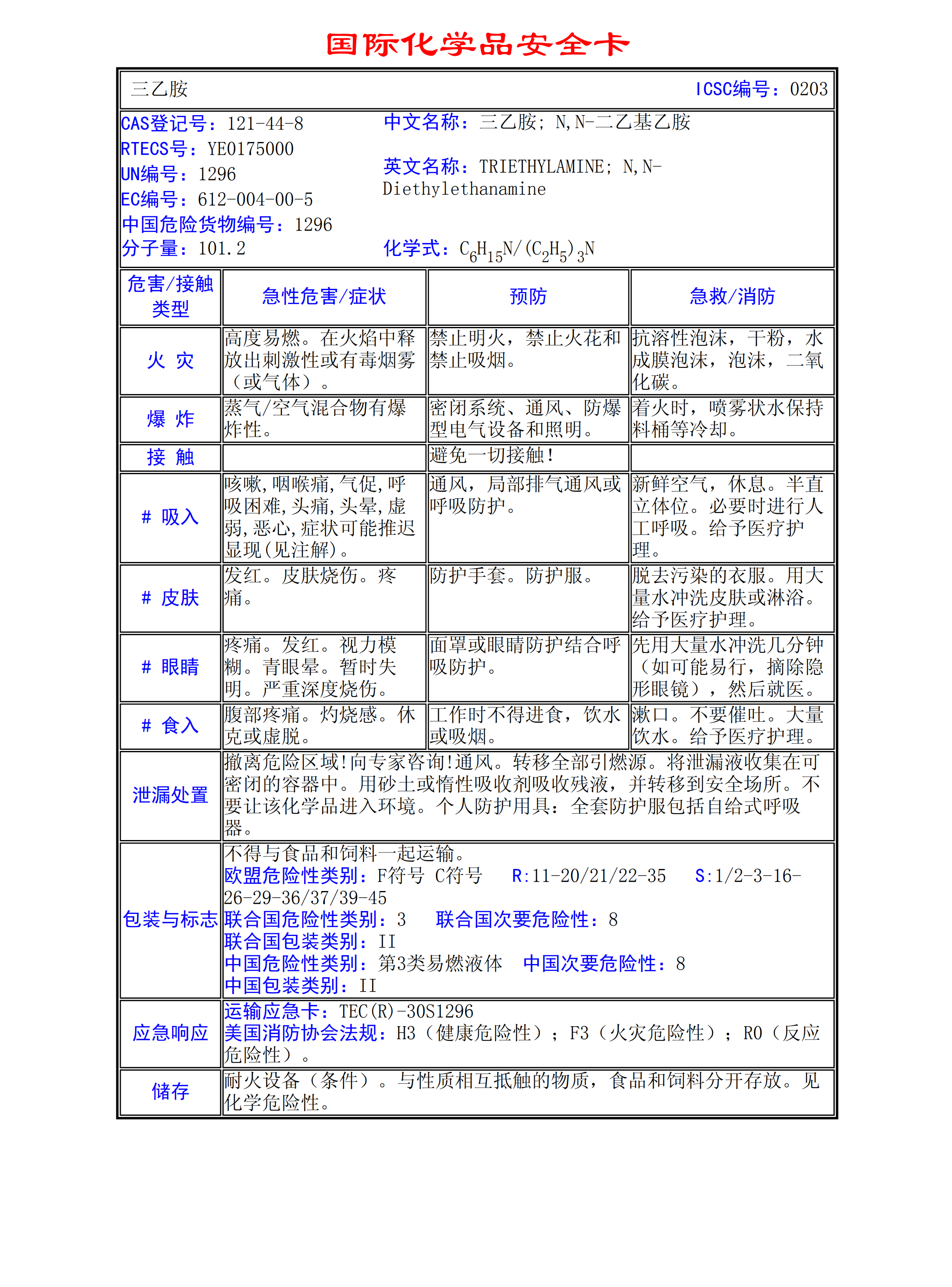 三乙胺MSDS