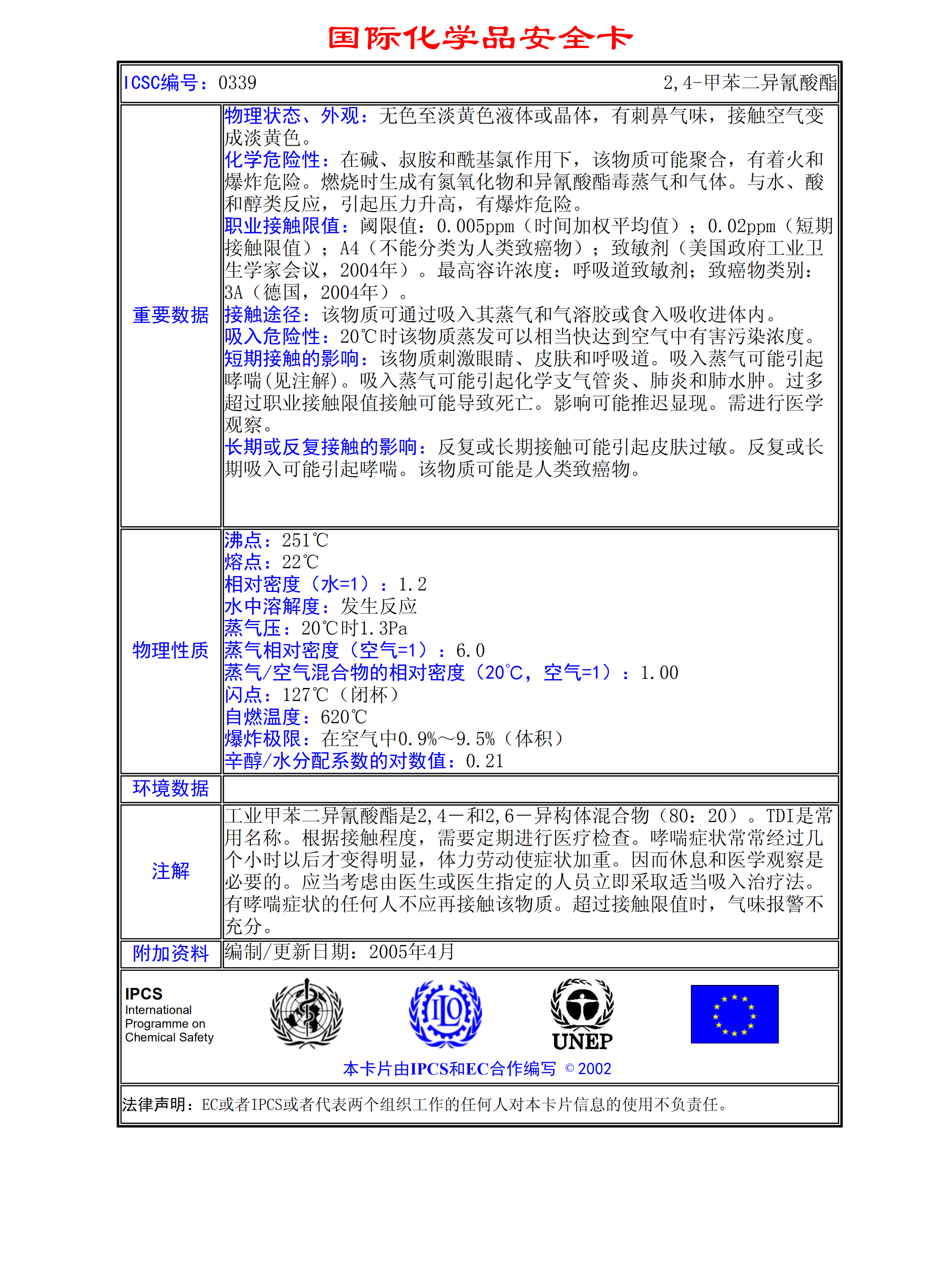 2,4-甲苯二異氰酸酯MSDS