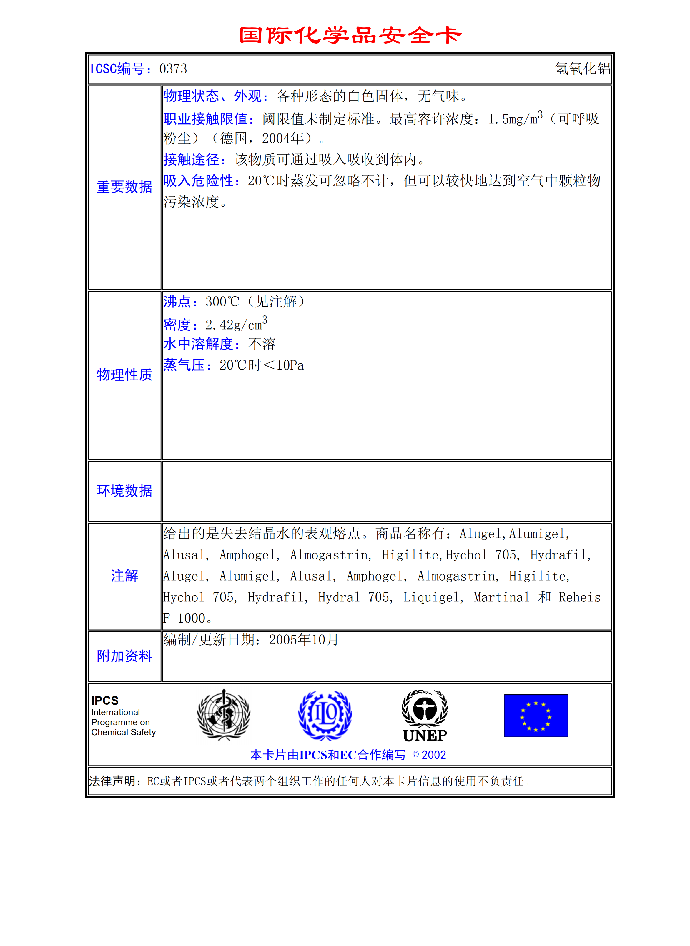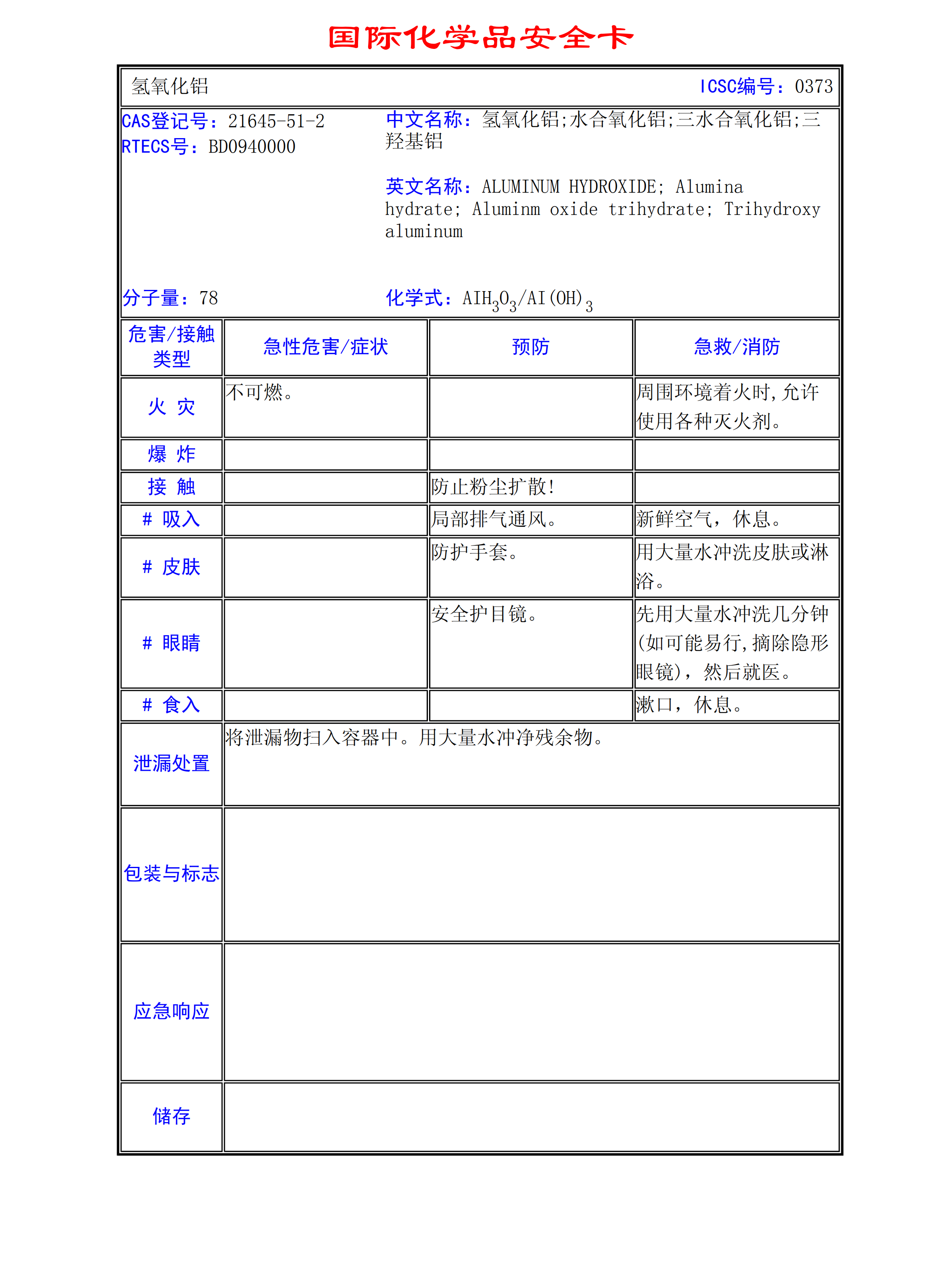 氫氧化鋁MSDS