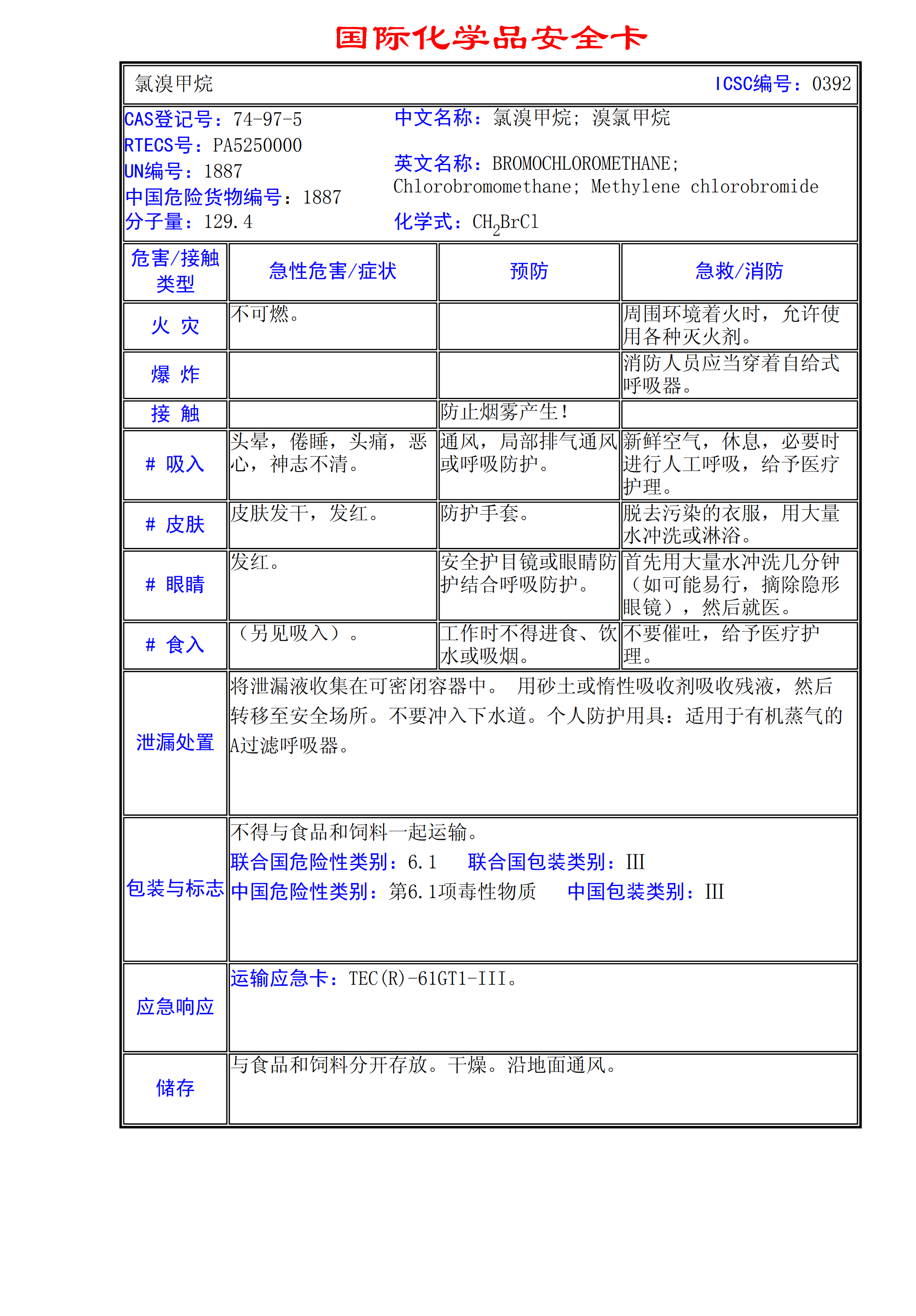 氯溴甲烷MSDS