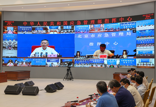 7月11日,國家防總副總指揮、應急管理部部長黃明主持召開防汛專題視頻會商調度會議,與中國氣象局、水利部、自然資源部會商研判,視頻連線四川、陜西、河南、山西、河北、北京等地防指、消防救援總隊和森林消防總隊,會商部署當前防汛和北方強降雨防范應對工作。周學文、徐平、閔宜仁、瓊色等部領導參加會議。