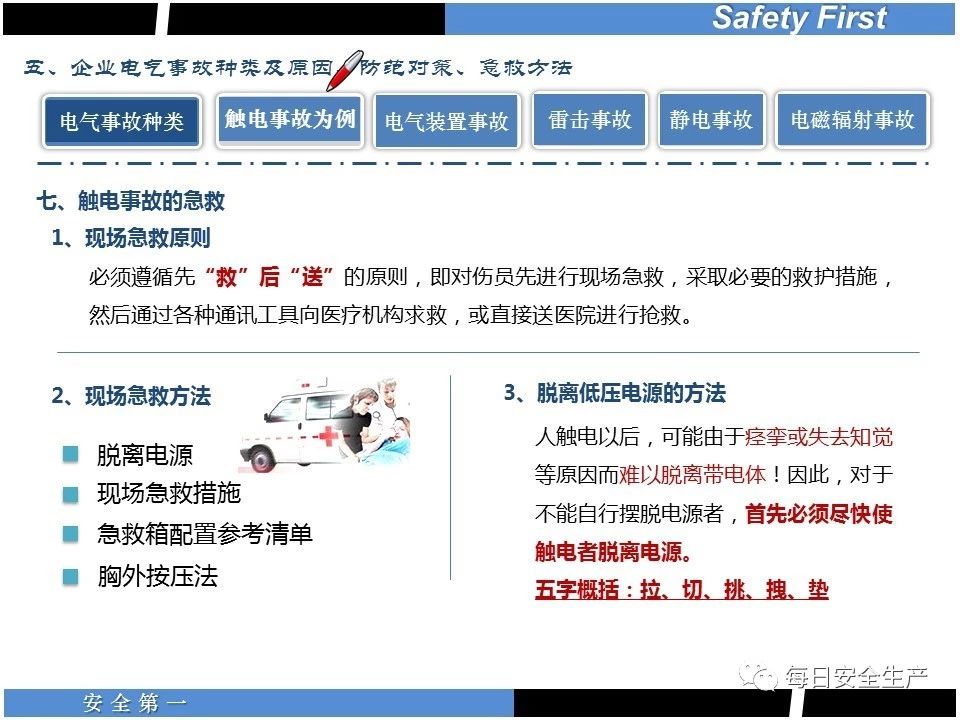 觸電急救原則是:迅速、就地、準確、堅持。