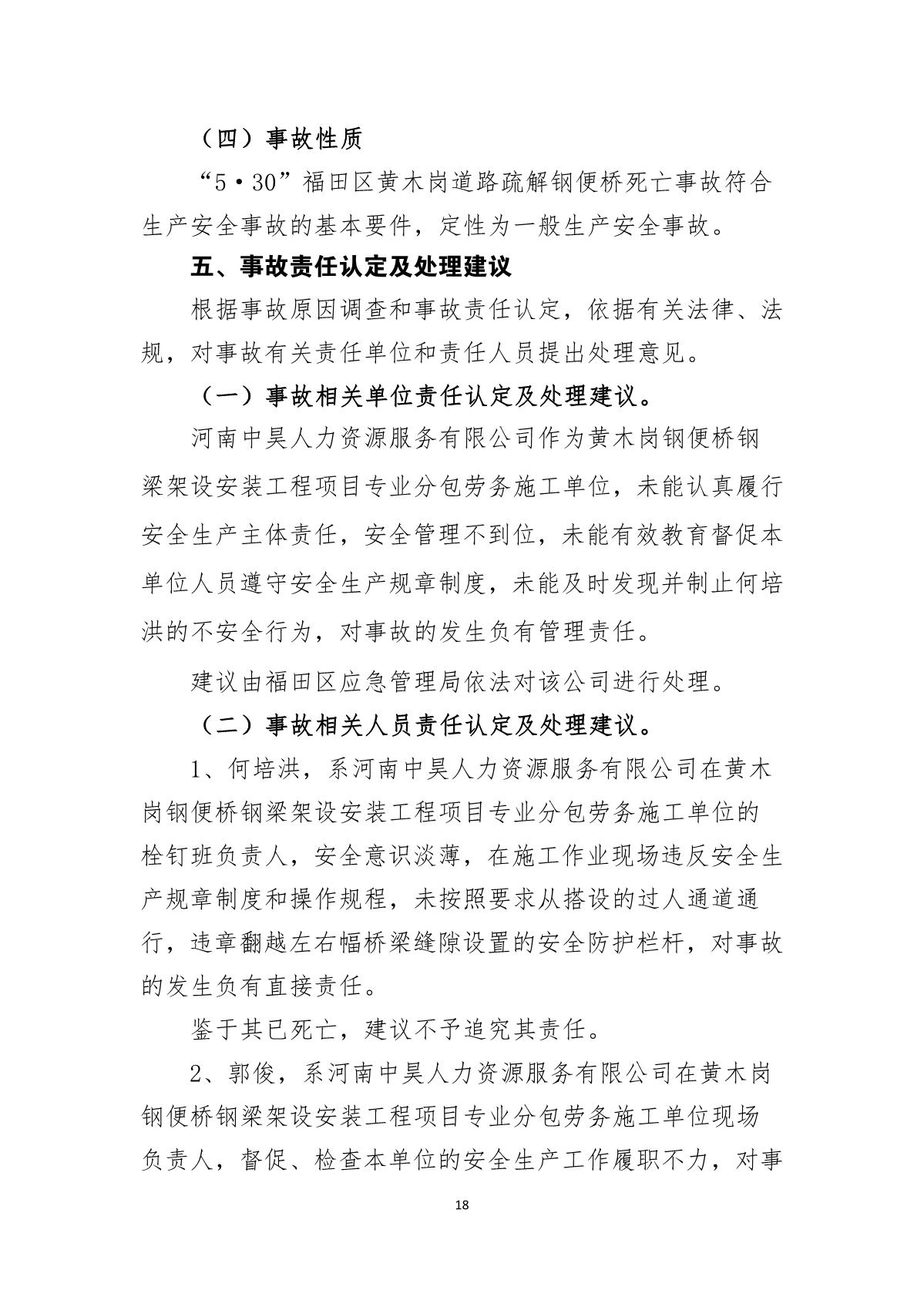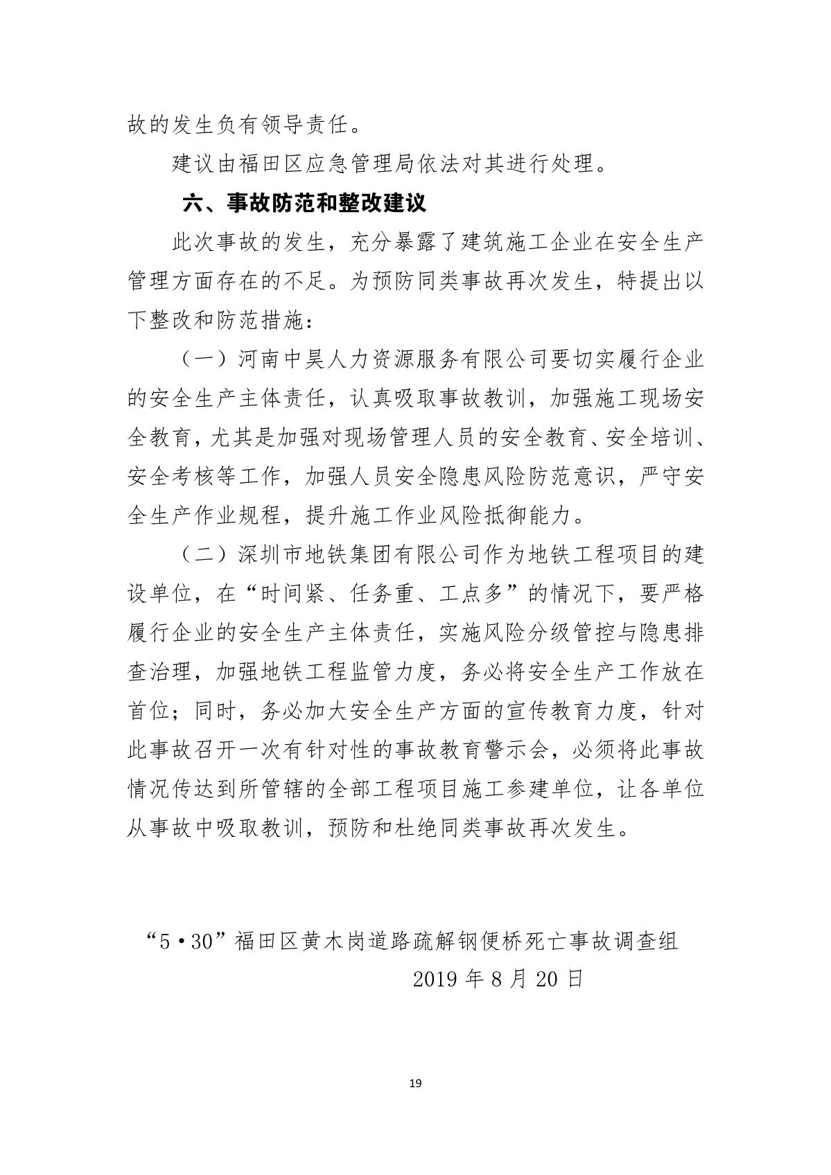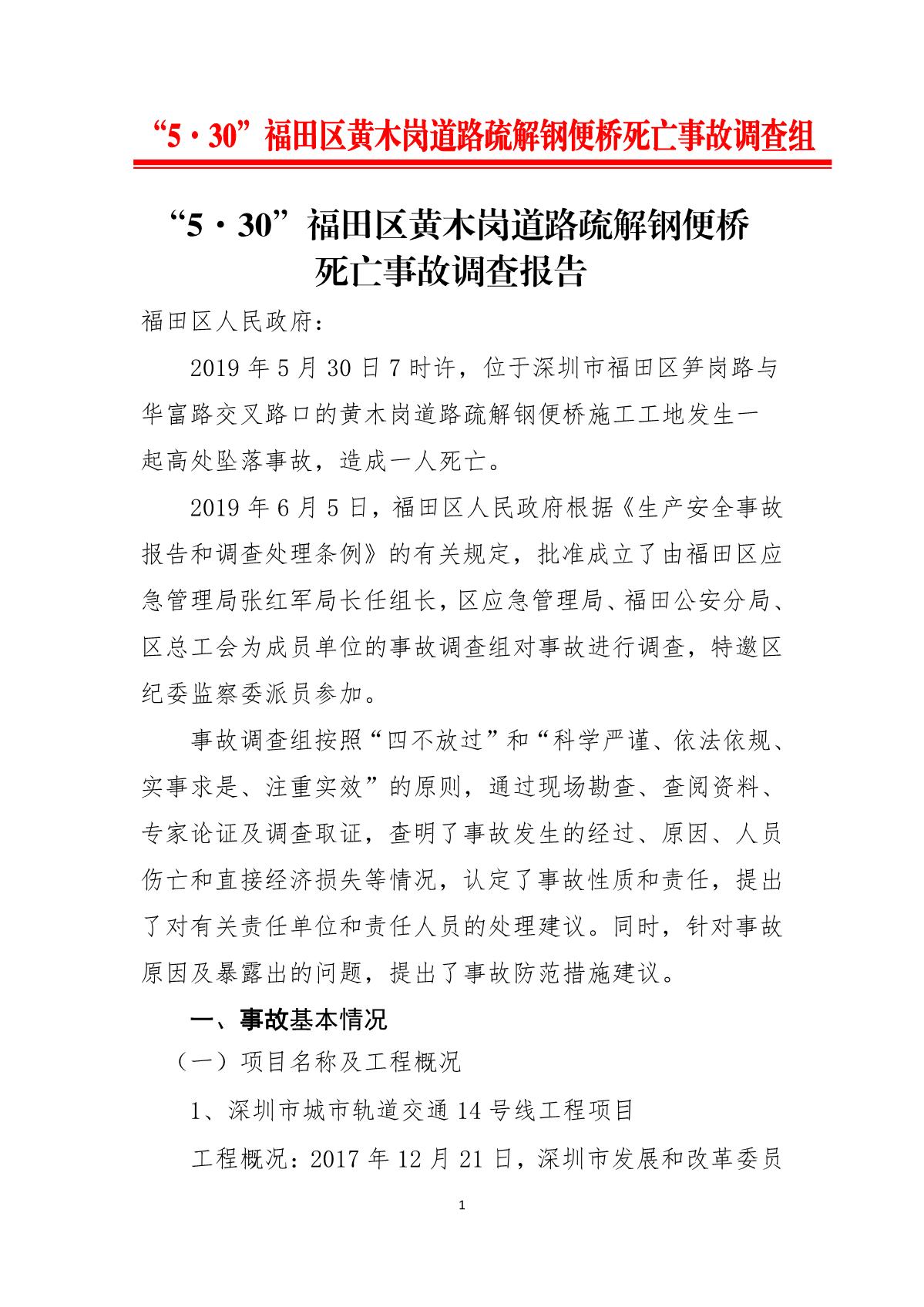 “5.30”福田區黃木崗道路疏解鋼便橋死亡事故調查報告