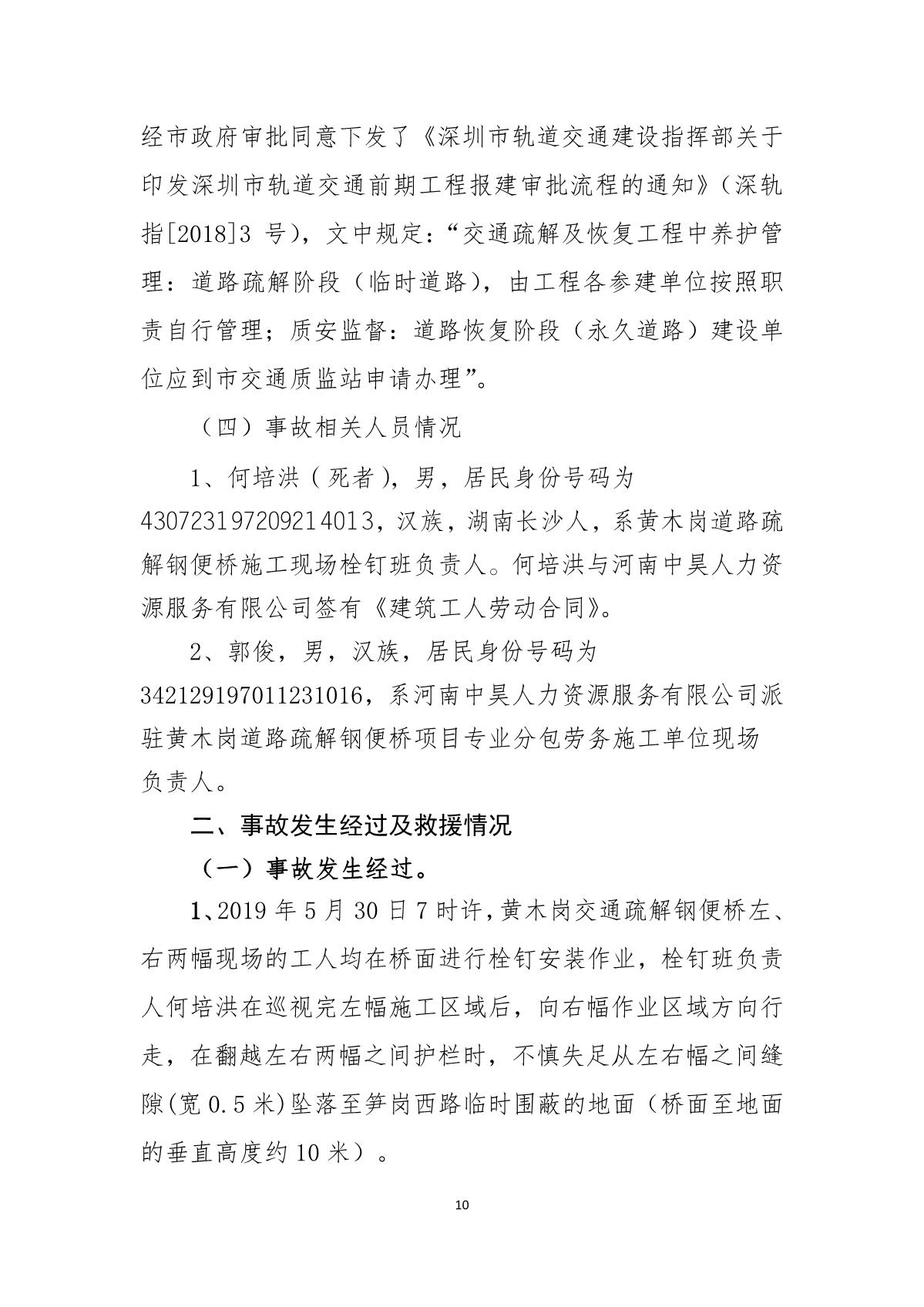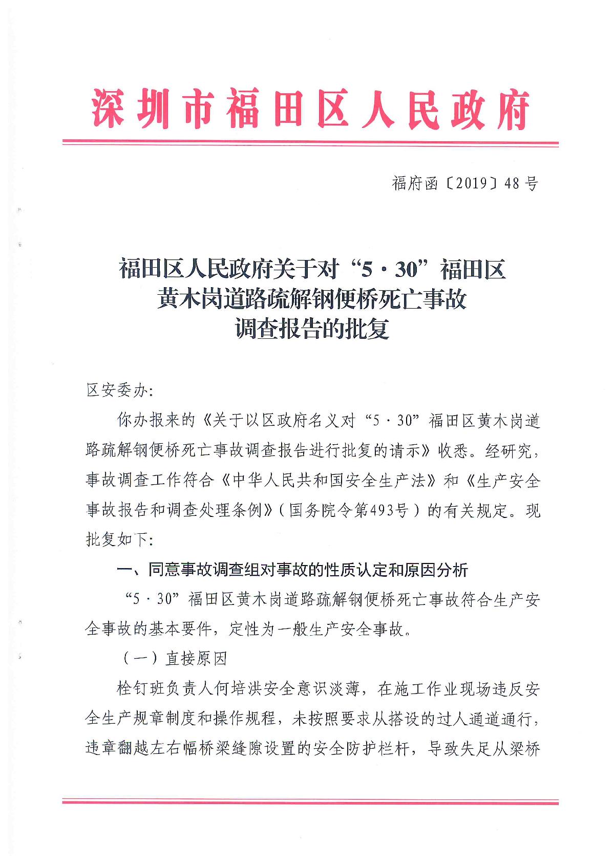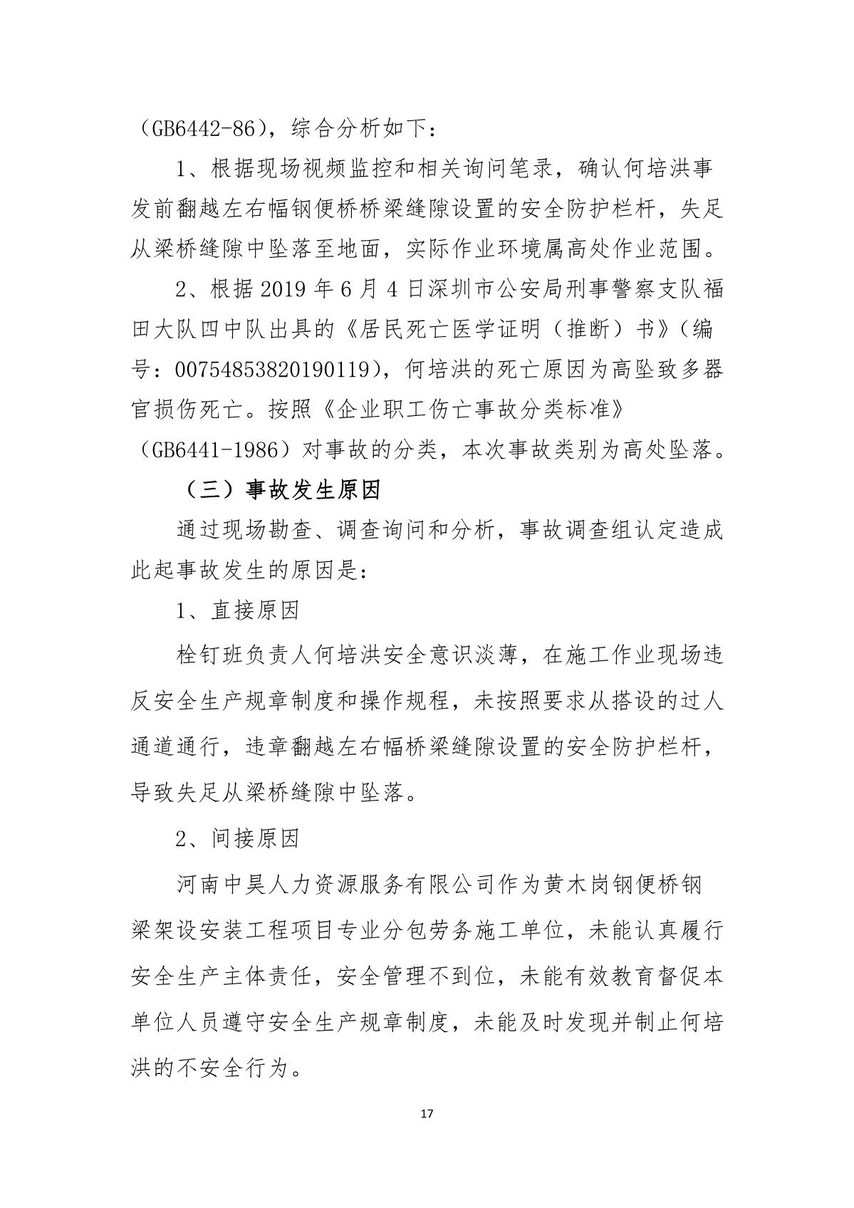 “5.30”福田區黃木崗道路疏解鋼便橋死亡事故調查報告