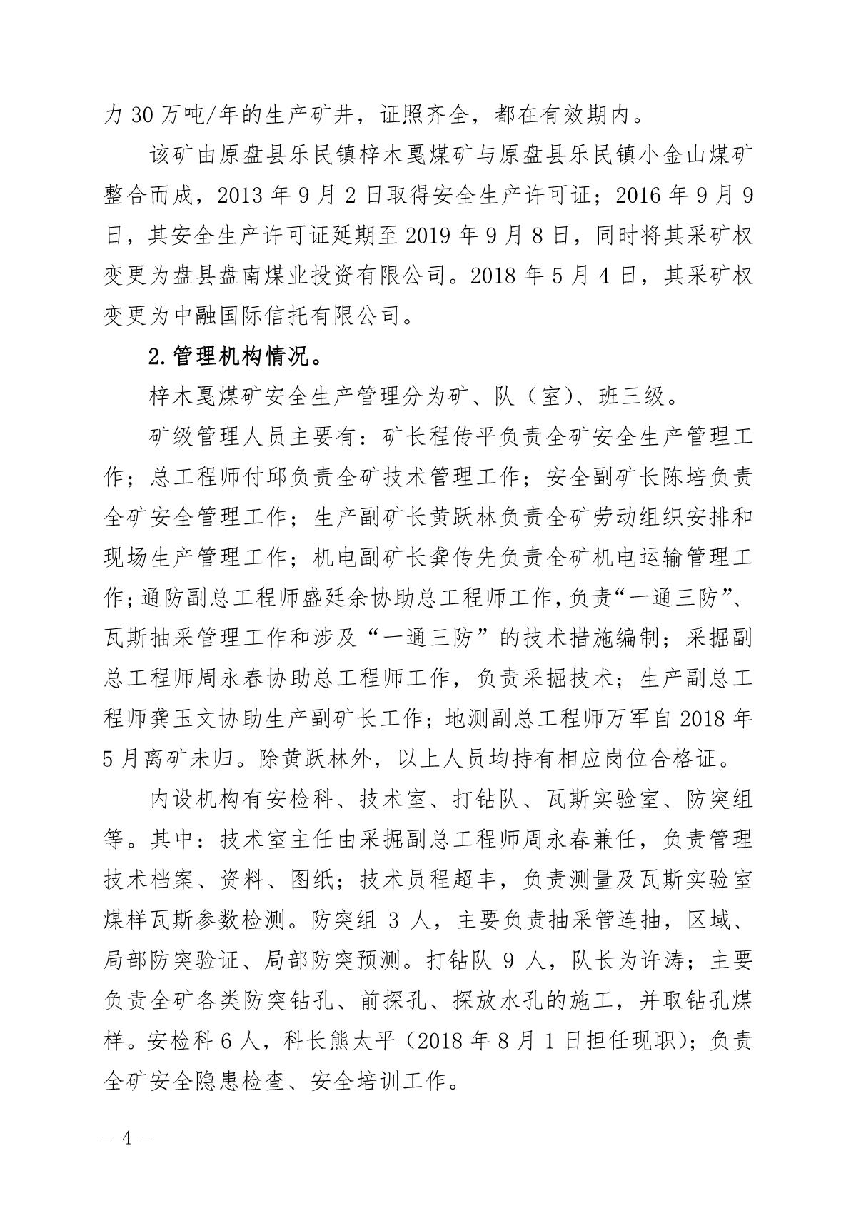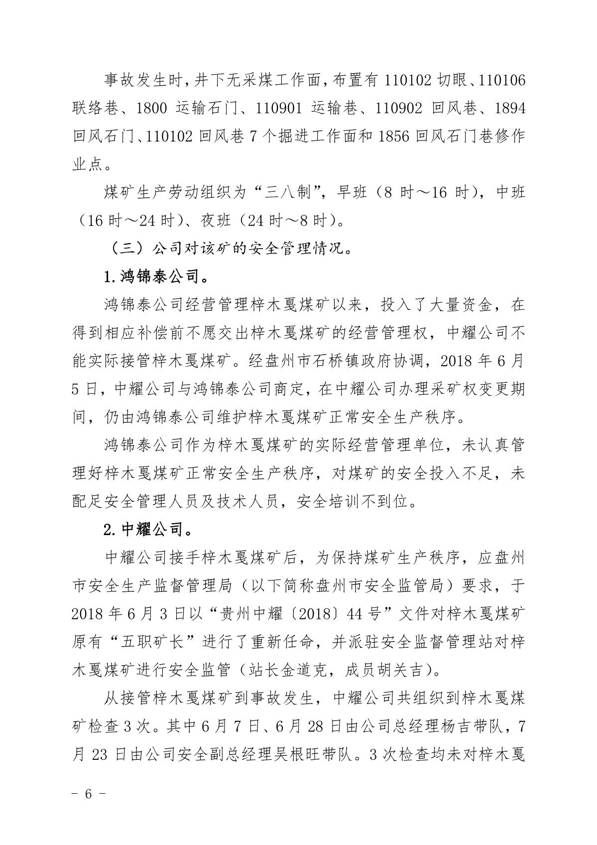 貴州六盤水梓木戛煤礦“8·6”重大煤與瓦斯突出事故調(diào)查報告