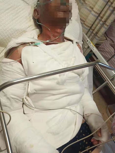 事故發生后,老吳被緊急送往醫院接受治療,醫生確認老吳全身多處燒傷,面部尤其嚴重,部分皮膚甚至呈焦黑色。