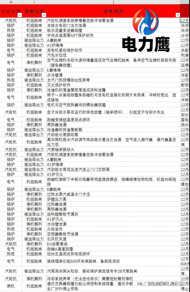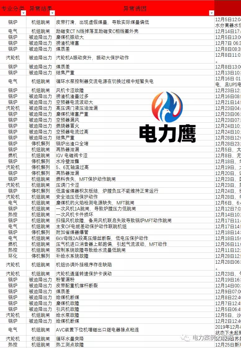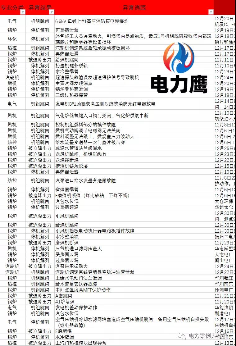 對于12月非停電力鷹建議電廠兄弟關注:深度調峰影響;結構問題;吹灰器吹損問題;短期過熱;長期過熱器;磨損;材質老化及原材料質量;熱疲勞裂紋檢查;異種鋼焊縫裂紋檢查;腐蝕。