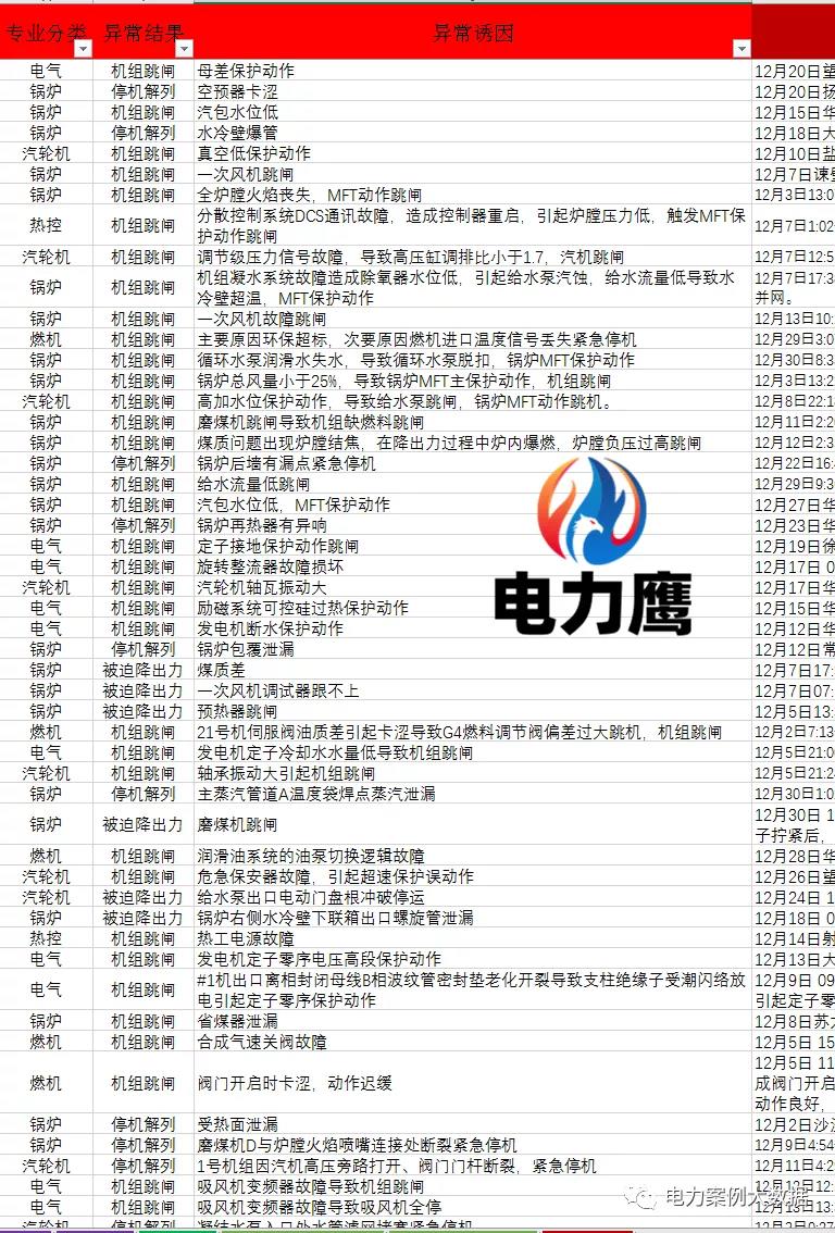 一、12月“四管”泄漏是火力發電機組中最頻繁的事故,是影響電廠機組穩定可靠運行的關鍵因素;電力鷹通過對近年來火電“四管”泄漏的典型失效情況關注并進行統計分析,以便摸清情況,研究失效類型、原因、規律及預防對策,探求失效規律,提出改進建議,以便在今后機組檢修時提供依據,及時采取預防措施。