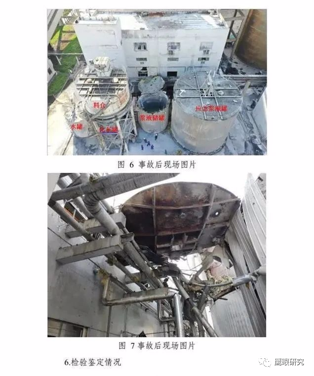 此時,項目經理讓張成到罐體底部清理漏出的漿液。當張成沿著罐體周圍的梯子剛剛下到地面,突然聽到一聲巨響,他的手和腿都被什么東西刮傷了,開始流血。他顧不上自己的傷,抬頭一看發現罐頂已經沒了。他趕緊往罐頂跑,發現原來在罐頂的6名同事都已不見蹤影。此時,公司的另一名同事趕到現場。他們報警后,立即開始在現場搜尋同事。沒多久,他們就找到所有的同事,有的躺在罐子旁的地上,有的在附近的泵房頂上,最遠的人被爆炸沖出10多米遠。