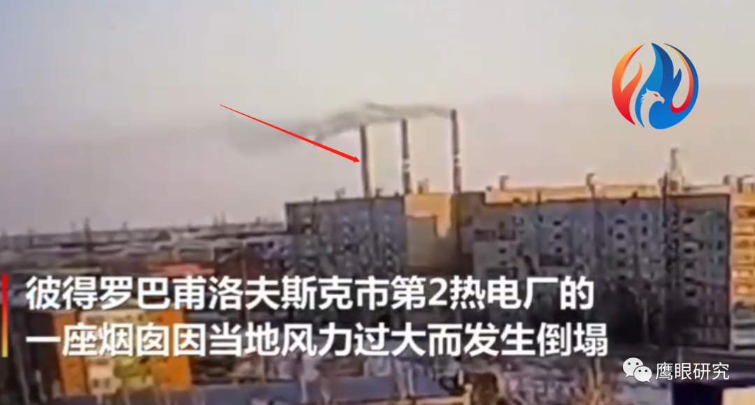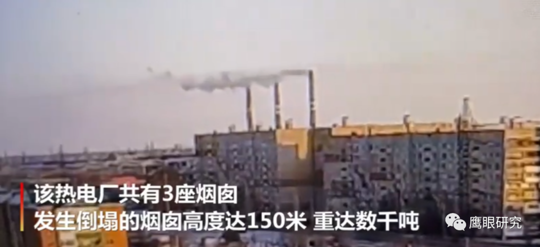 哈薩克斯坦熱電廠(chǎng)煙囪因大風(fēng)倒塌