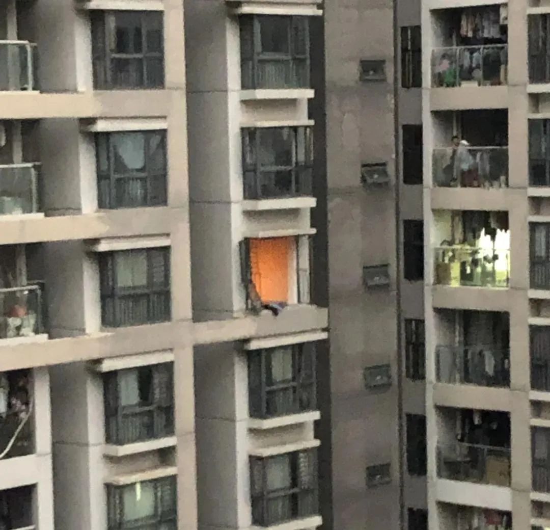 只見一個高層單元內正往外冒著火光
