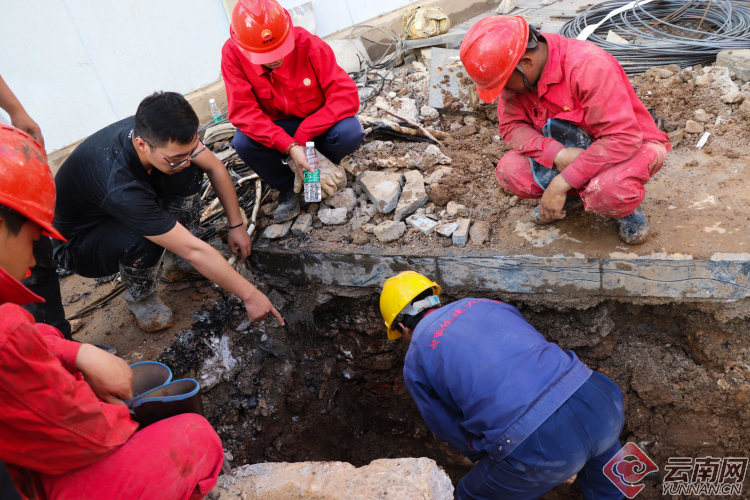 【昆明塘子巷天然氣泄漏】現場:多部門聯手搶修 施工人員奮力挖掘破損管道