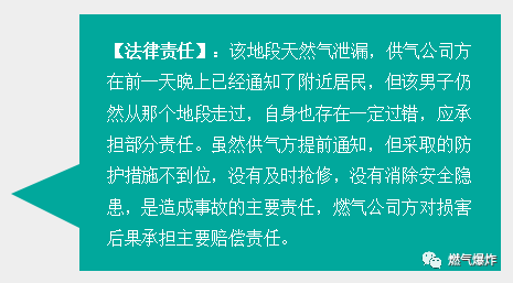 某男在早上散步過程中,地下天然氣爆炸造成死亡。頭一天晚上11點就知道該區域有天然氣泄漏,燃氣公司已經提前通知了附近居民。