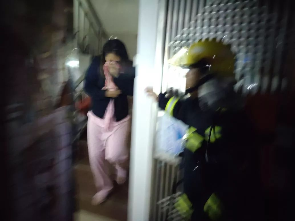指揮員立即下令出一干線兩水槍開始滅火并慢慢推進(jìn),并安撫被困人員,派一組人進(jìn)入出租屋進(jìn)行破拆搜救被困人員,搜救組進(jìn)入出租屋后利用室內(nèi)消防栓撲滅樓層內(nèi)的明火,并逐層逐戶疏散出約20名被困人員。