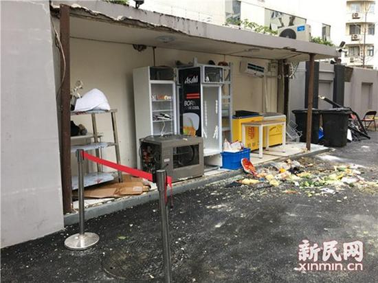 今天上午,新民晚報記者在事發現場看到,新閘路1039弄弄口人行道上,一臺挖掘機已對受損管道區域進行開挖,現場有燃氣搶修車及搶修人員。而一旁弄堂門口的一間儲物倉庫內的冰箱、空調等物品在事故中損壞,冰箱內的食物散落一地。此外,弄堂旁的一幢大樓外的PVC材質的落水管斷裂,一片狼藉。據稱,現場一度曾有明火。