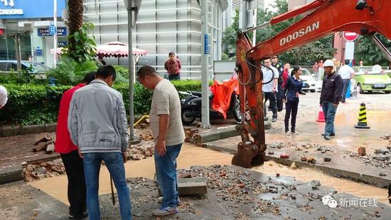 記者 何思勉 今天下午2點13分,南寧市金源CBD現(xiàn)代城也就是我現(xiàn)在所處的這個位置,發(fā)生了一起因施工而造成的管道燃氣泄漏事件,我們從目擊者提供的視頻可以看到,當時泄漏的瞬間是塵土飛揚,痕跡還是十分明顯的,那么通過半個多小時的處置,現(xiàn)在管道的閥門已經被關上了,也通過降低空氣中天然氣的濃度等措施,現(xiàn)在這個位置相鄰的街道已經恢復了行人的通行,但是現(xiàn)場的情況還在變化當中。