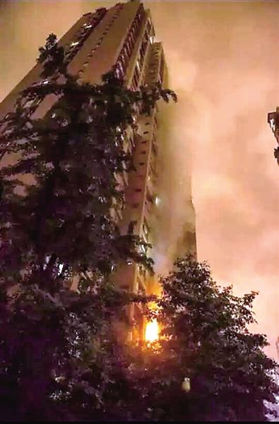 康德國會小區9棟爆炸起火。
